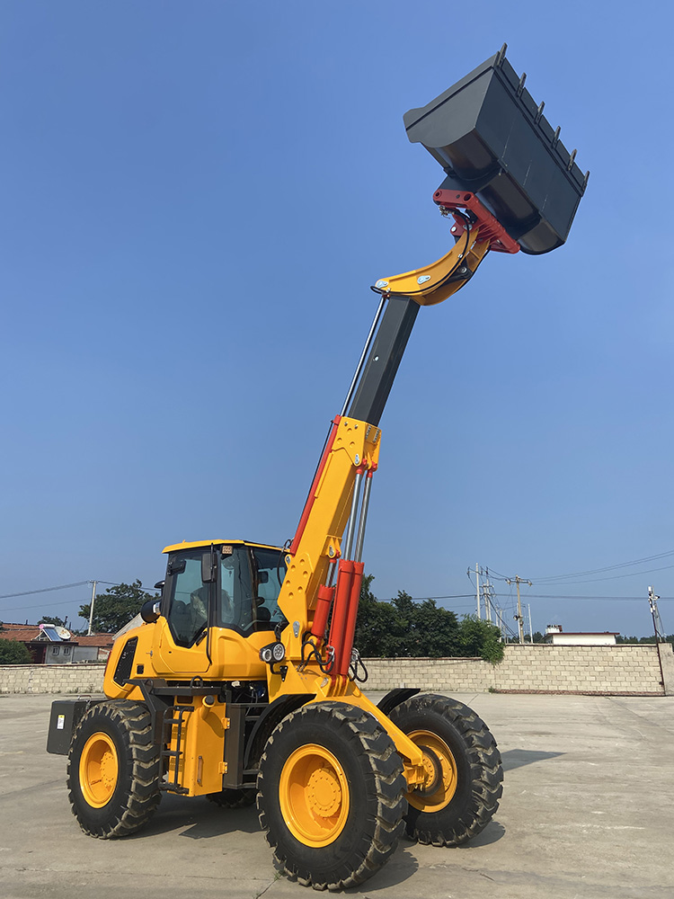 裝載部分,標配2米寬鏟斗,斗容1.2立方,額定裝載量2500,最大卸載高度2500,最大卸載距離800,前方加裝快換接頭,滿足不同作業需求。